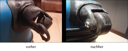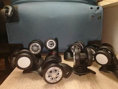 Častou chybou je nesprávna preprava kufra napríklad obrubníky. Upchaním koliesok dochádza ku zlyhaniu ložísk a k následnému odretiu a zlomeniu koliesok. Vymeníme Vám poškodená kolieska kufra za univerzálne nové kolieska. A tak kufor budete môcť užívať pri cestách a spoznávaní sveta.